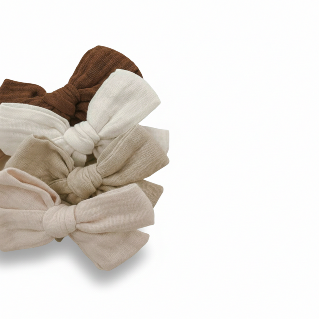 Made from lightweight gauze fabric, this dainty bow is gentle on newborn skin and comfortable enough for all-day use.
